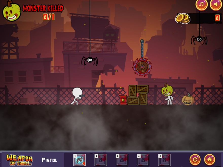 Your task is straightforward: destroy monsters to survive. Stickman is given a pistol and put in a dangerous situation. You must choose between shooting monsters directly or using objects on the map to your advantage as they appear in different locations. Accuracy and strategy are more crucial than firing speed.