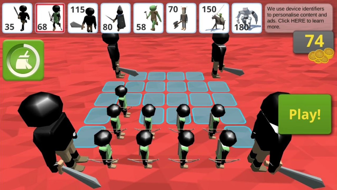 Despite being easy to play, the game offers a great deal of strategic depth. The first step is to select your stickman units and place them on the battlefield. When your formation is ready for your army to engage the enemy, click "Start." Using powerful combinations and strategic unit placement, your goal is to eliminate every enemy force.